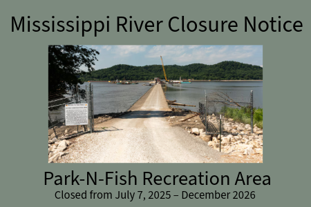 The U.S. Army Corps of Engineers, Rock Island District, announces the closure of the Park-N-Fish Recreation Area, located near Hull, Illinois, off Highway 106, starting July 7. The closure is anticipated to last through 2026.