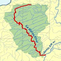 Description: The La Moine River, a tributary of the Illinois River, is located in western Illinois. It flows approximately 124 miles over a very irregular course that earned it its original name of Crooked Creek. Its major tributaries include Camp Creek and La Harpe Creek. The La Moine River flows south through seven counties and joins the Illinois River at the junction of Cass, Schuyler, and Brown counties.
