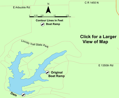 Location: Lincoln Trail Lake is located within Lincoln Trail State Park, approximately two miles south of Marshall in Clark County Off of State Route 1 in Clark County.