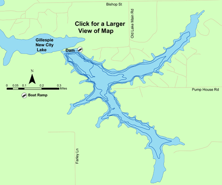 Description: Gillespie Old City Lake is 71 acres with a shoreline length of 5 miles, watershed of 3,300 acres, maximum depth of 21 feet, and average depth 8.8 feet. It is owned by the City of Gillespie and is cooperatively managed with IDNR Fisheries. This small water body is predominantly used for recreational fishing only.