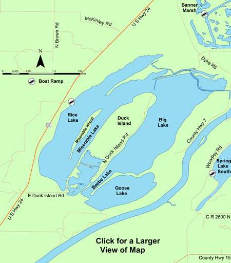Location: Located in Central Illinois, the Rice Lake State Fish and Wildlife Area lies adjacent to the Illinois River, 4 miles south of Banner, Illinois, along Route 24 in Fulton County.