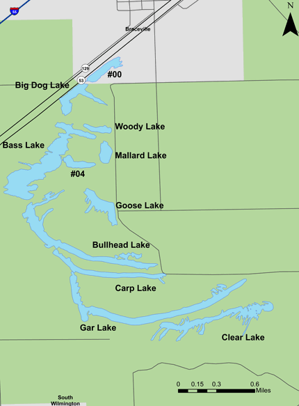 History and Status of the Sport Fishery: Main lakes are surveyed on an alternate year basis. Spring trap netting is also incorporated at selected lakes. Lakes sampled in 2015 were Bullhead (Lake #7), Carp (Lake #8) and Gar (Lake #9) Lakes. Habitat enhancement projects have been completed on many of these lakes and ponds. Aquatic vegetation, while present, has currently not required any active management.